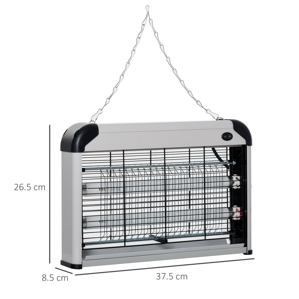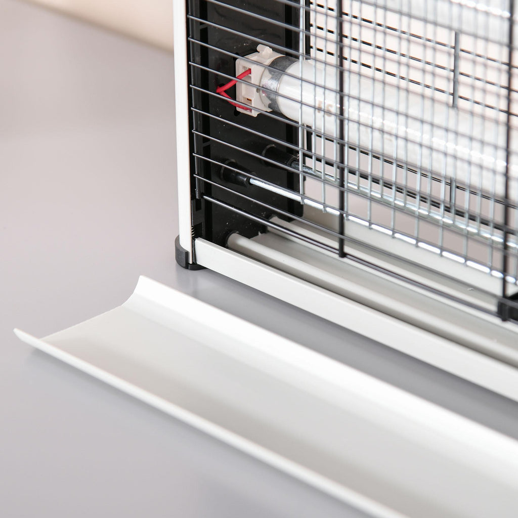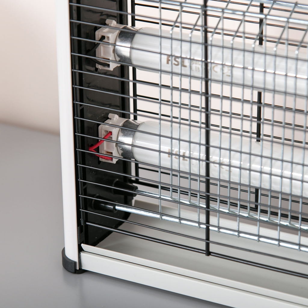 - 2 Röhren mit LED-Leuchten, um Insekten anzulocken und sie durch Stromschlag zu töten