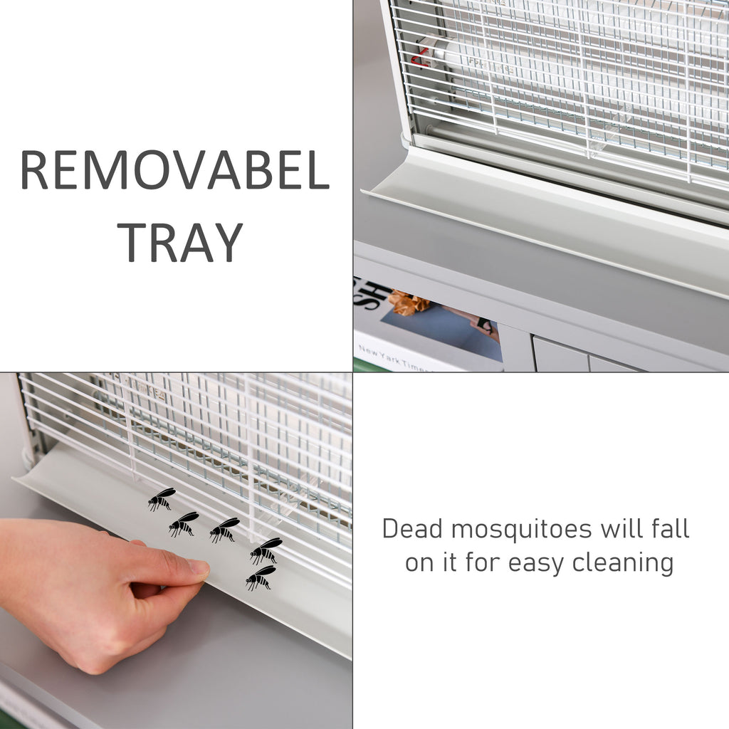 - 2 Röhren mit LED-Leuchten, um Insekten anzulocken und sie durch Stromschlag zu töten