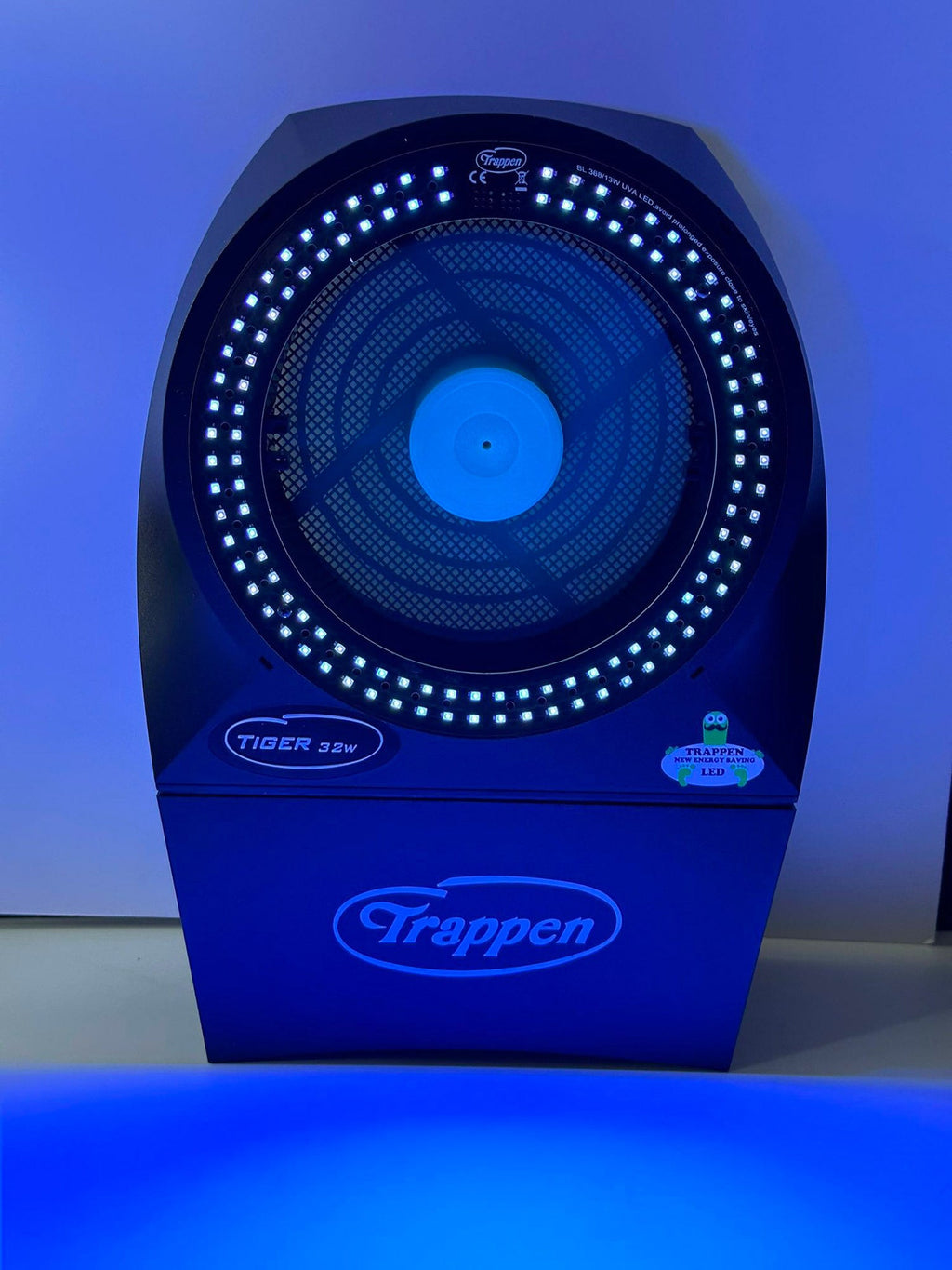 - L'Elica fluorescente rende più luminoso il tunnel dell'apparecchio e quindi più efficace l'attrazione degli insetti. BREVETTO TRAPPEN
